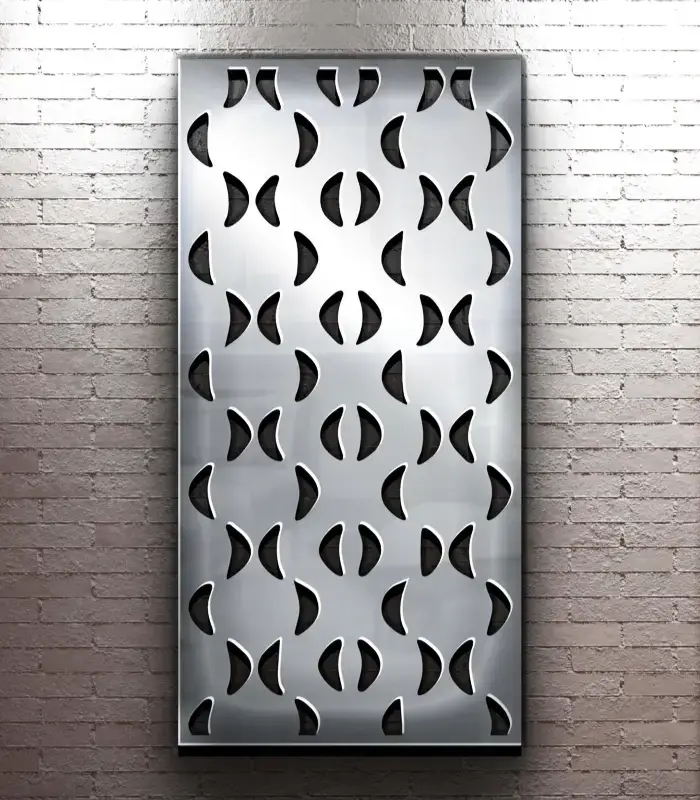 Oceľová výplň hrúbky 2mm, bez povrchovej úpravy. Šírka nevyrezaného okraja je štandartne 30 mm alebo na želanie akákoľvek iná.