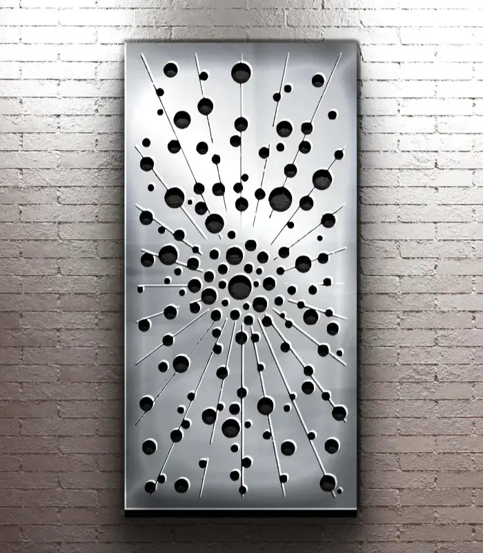 Oceľová výplň hrúbky 2mm, bez povrchovej úpravy. Šírka nevyrezaného okraja je štandartne 30 mm alebo na želanie akákoľvek iná.